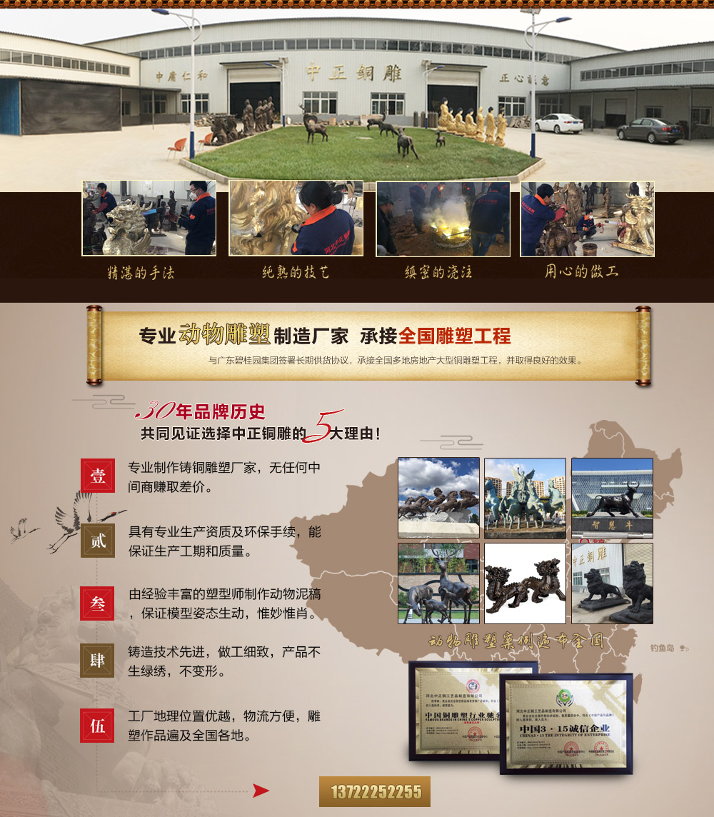 河北中正銅工藝品制造有限公司具有優(yōu)越的地理位置,離107國道10公里,離天津海港160公里,交通便利。追求卓越、開拓創(chuàng)新、重合同、守信譽、讓客戶滿意的經營理念。河北中正銅工藝品制造有限公司竭誠為國內外客戶提供優(yōu)質的服務,愿與新老客戶攜手共創(chuàng)美好未來。